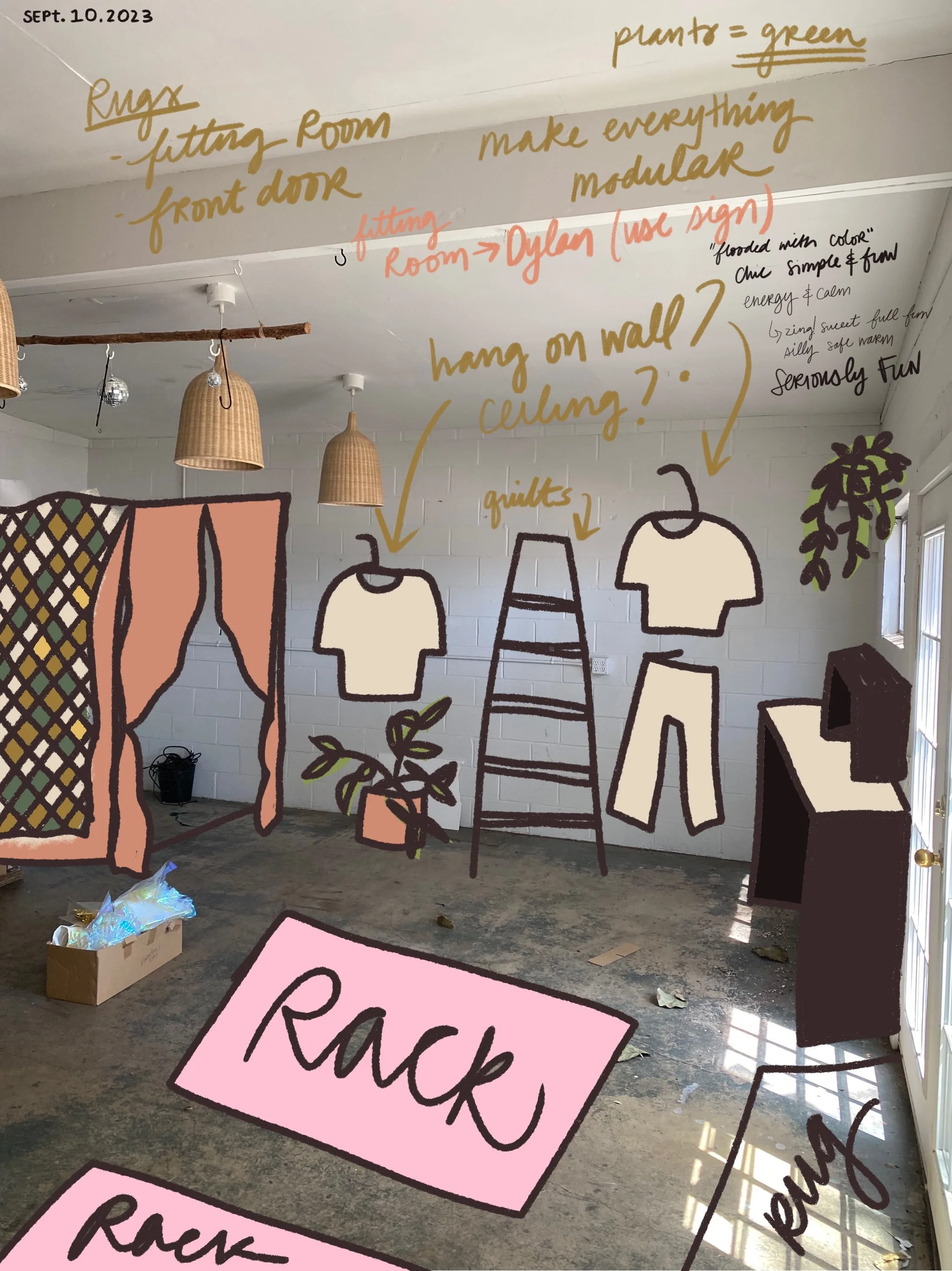 The emotional tone was just as important as the physical one, we wanted the store to feel soft, bright, vintage-but-alive, and body-positive, with plenty of room to browse, get measured, or just exist in comfort.